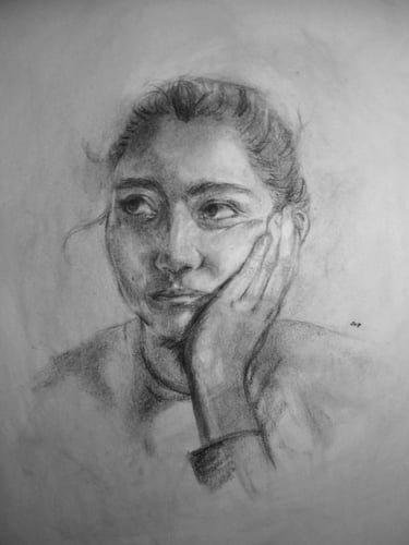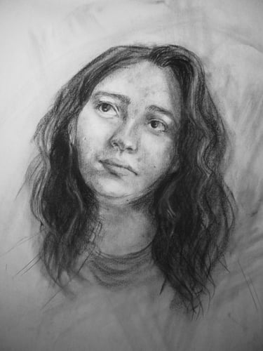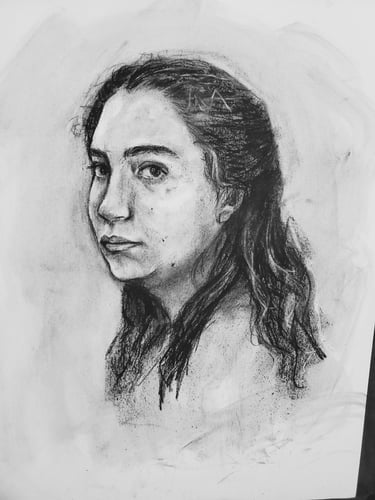 Charcoal on Newsprint. A yearly self-portrait to track my progress in artistic skill and self-reflection.